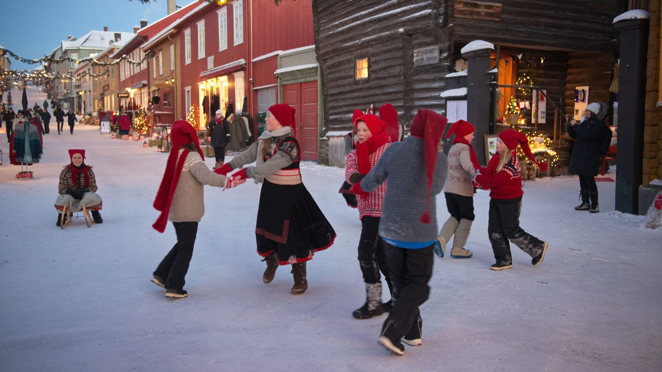 med hest og sledeturer, julesang, og nisser i gatene